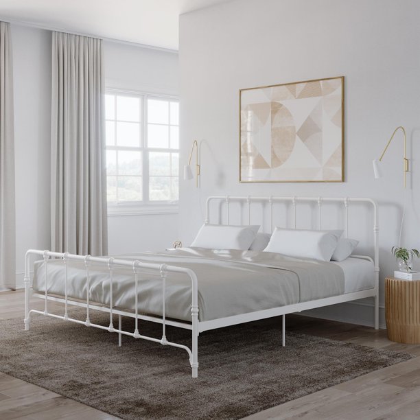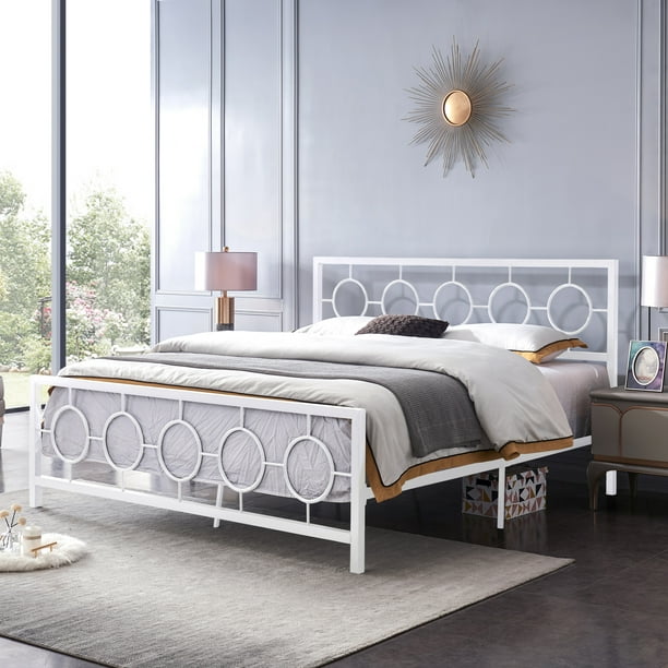 No additional box spring or foundation is required. Sha cerlin king size platform bed frame with headboard and wood slats, fabric upholstered mattress foundation with metal legs, no box spring needed, black. Hillsdale furniture jolie arched scroll king bed frame in textured white. And whether it's white or black bedroom furniture you're looking for or furniture with a modern or rustic slant, walmart.ca has the options you're looking for. Product title dhp maven upholstered platform bed, king size frame,.