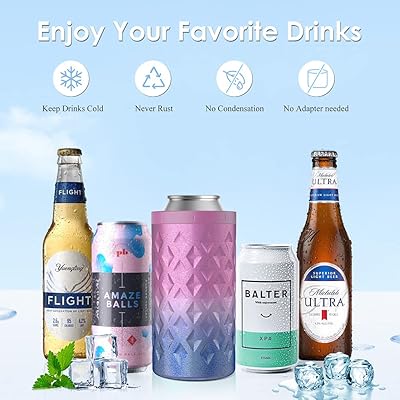 12 Oz Slim Can Drinks Alcoholic - 4 In 1 Skinny Can Coozie For 12 Oz Sweat Free Slim Can Cooler Soda Double Wall Vacuum Insulted Stainless Steel Slim Can Keeper For Beer Beverages And Mixed Drinks Thermocoolers Travel To Go Food - As you know from experience, the liquid inside 8 oz cans gets warm from holding it in your hand much quicker than normal 12 oz beverages.